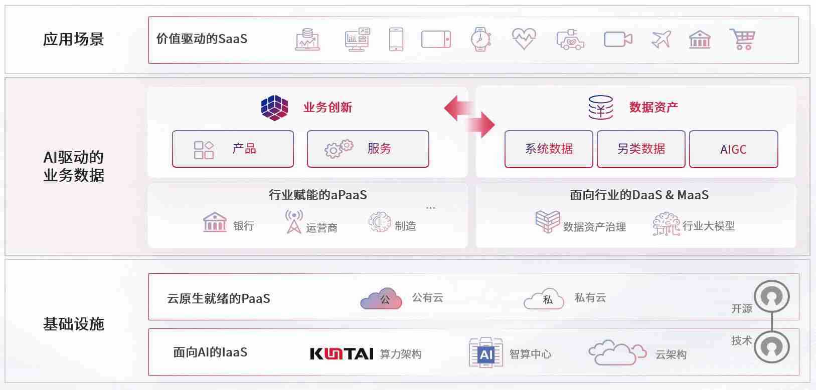数字时代,,,,围绕企业数字化转型的关键要素,,财神娱乐数码开创性的提出数云融合战略和技术体系框架,,,着力在云原生、、数字原生、、、、AI原生和信创产业上架构产品和服务能力,,,为处在不同数字化转型阶段的快消零售、、、汽车、、、金融、、、医疗、、、、政企、、教育、、、、运营商等行业客户提供泛在的敏捷IT能力和融合的数据驱动能力,,,,构建跨界融合创新的数字业务场景和新业务模式,,,助力企业级客户建立面向未来的核心能力和竞争优势,,,全面推动社会的数字化、、、智能化转型升级。。